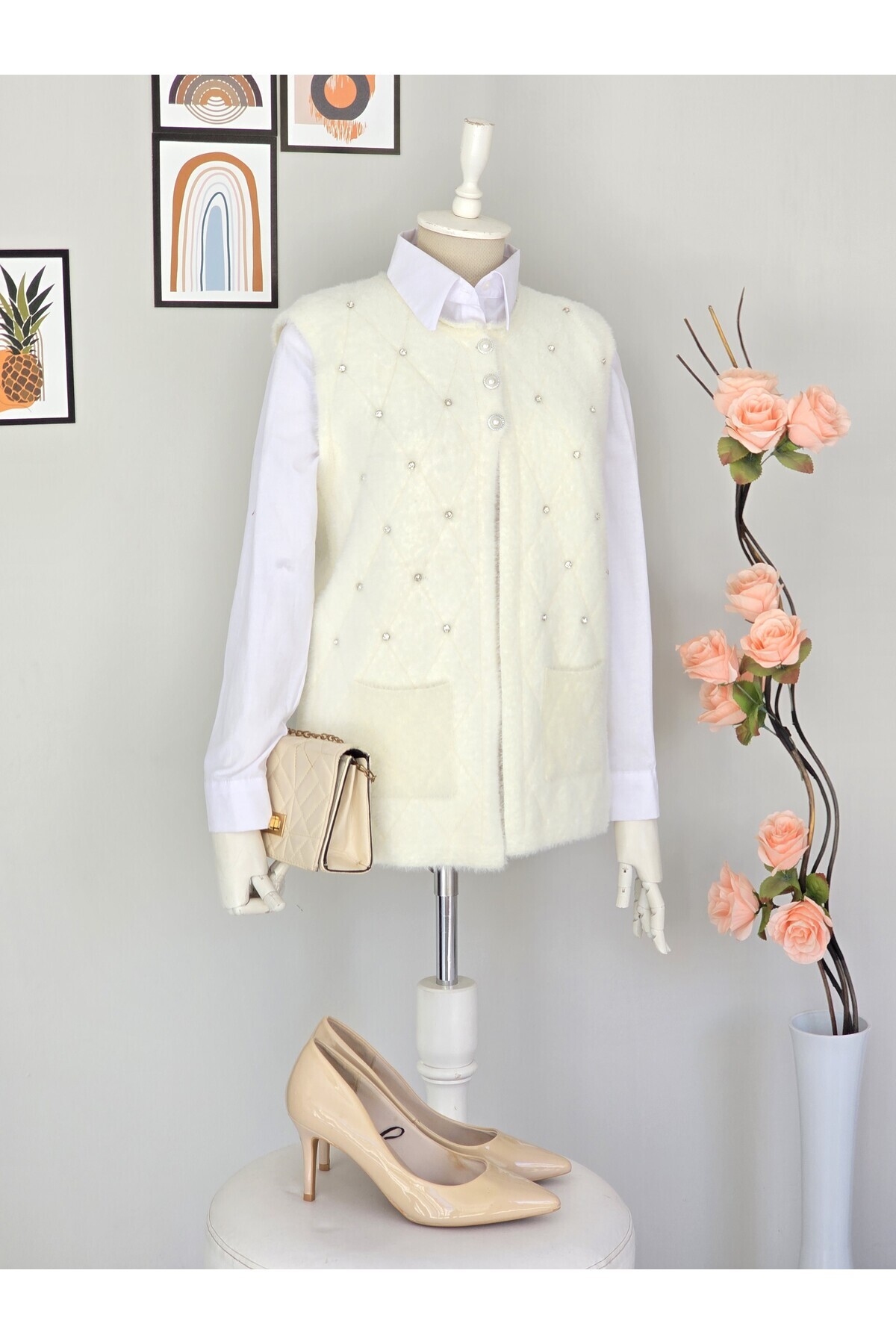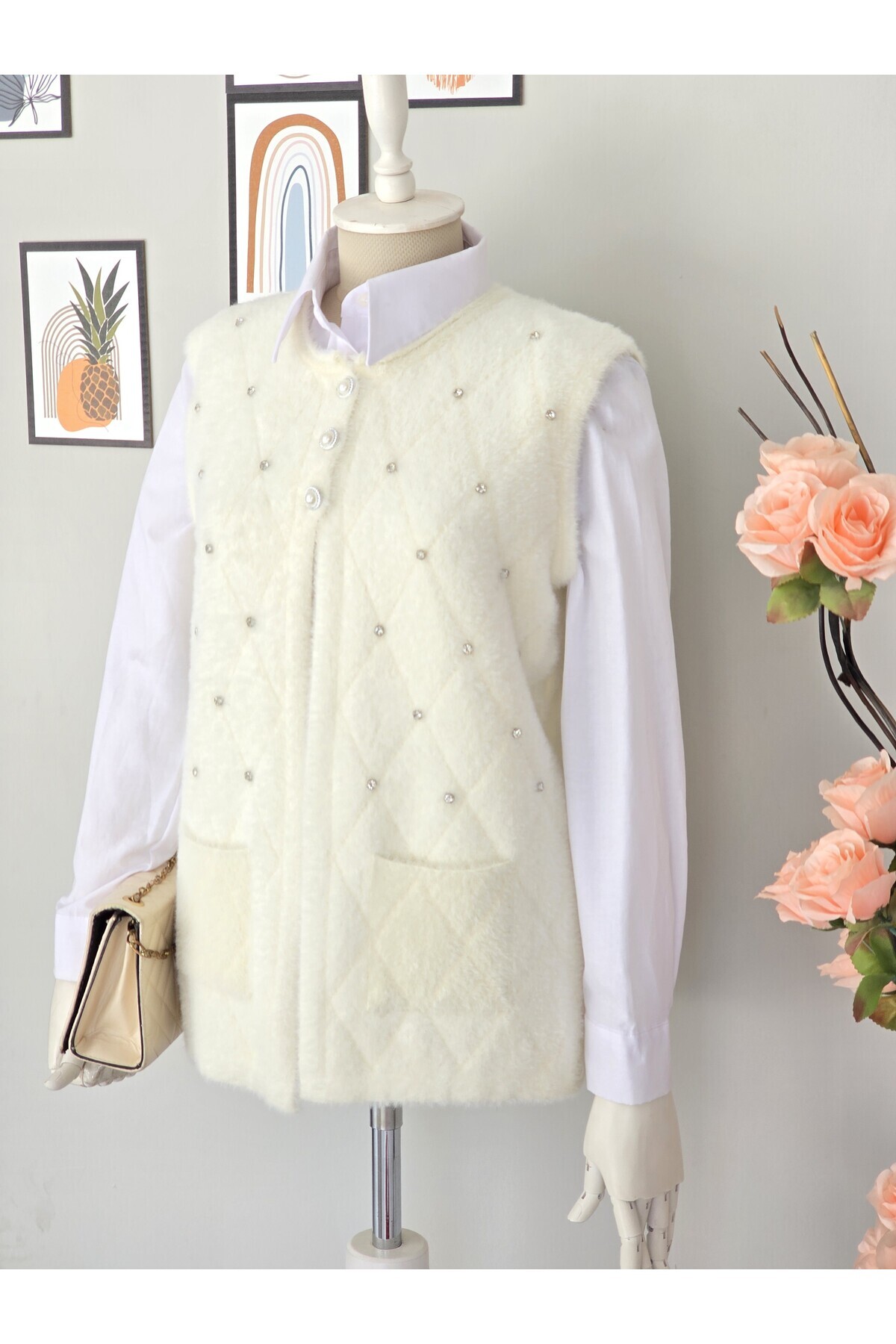 TAŞ DETAYLI YUMOŞ TRİKO KISA YELEK TAŞ DETAYLI YUMOŞ TRİKO KISA YELEK NF2271 36 - 40