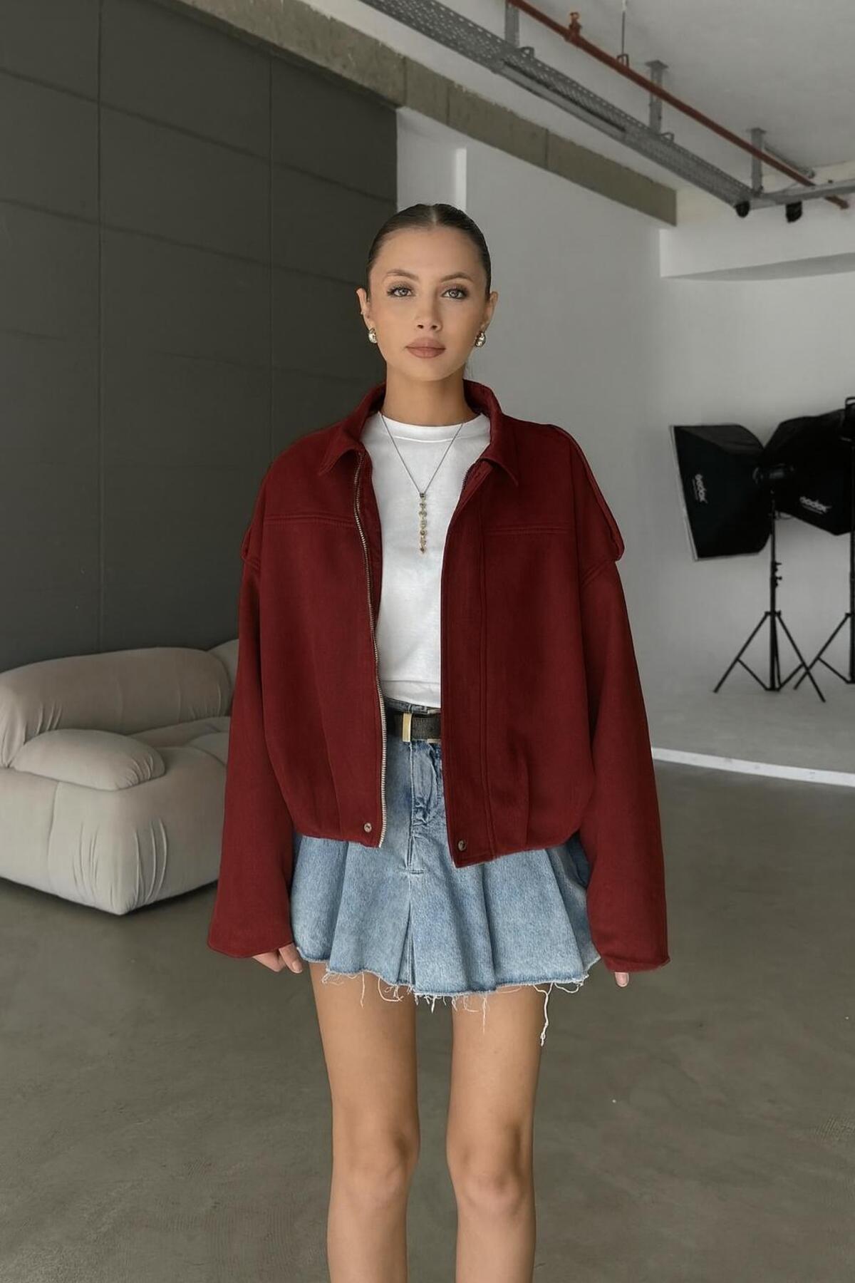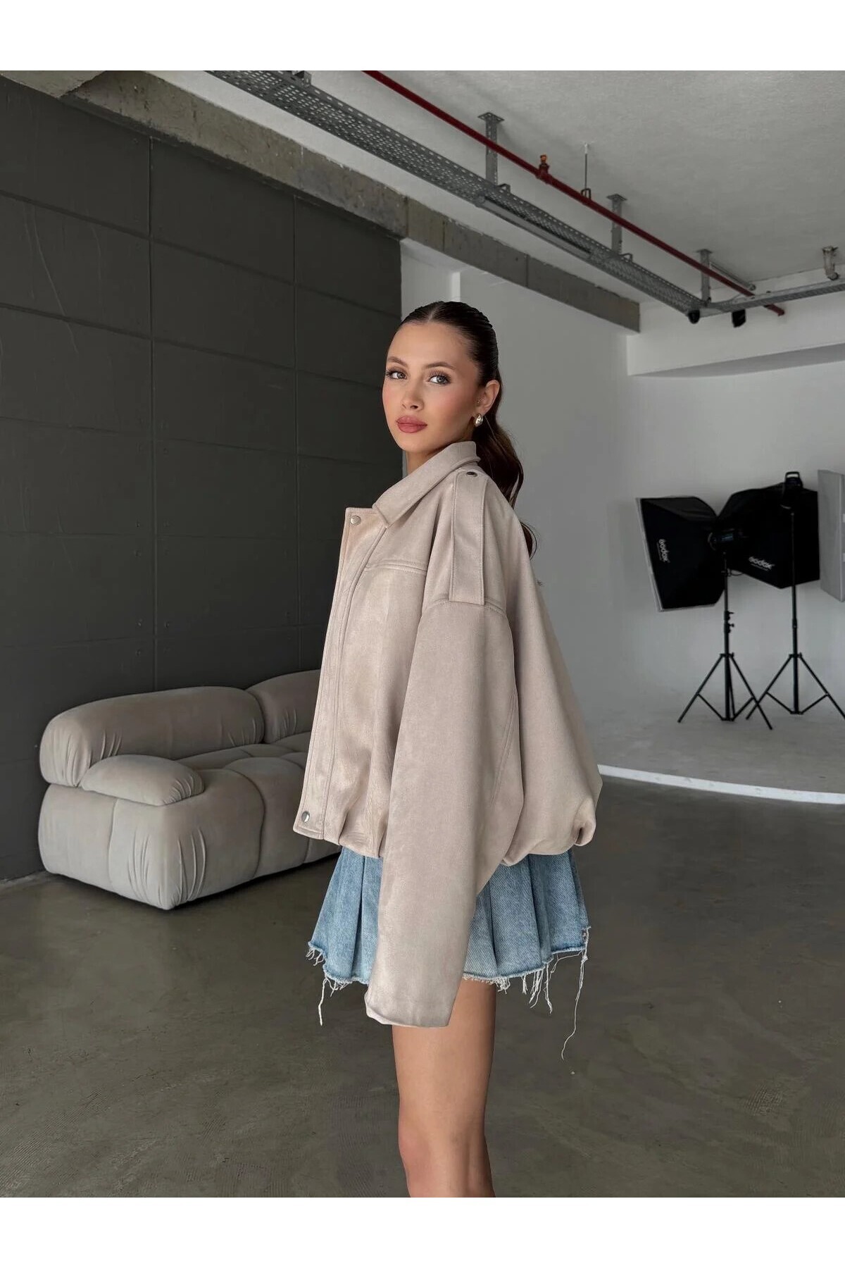 Oversize Cepsiz Kadın Bomber Süet Deri Ceket Oversize Cepsiz Kadın Bomber Süet Deri Ceket bellybommer190920254 L