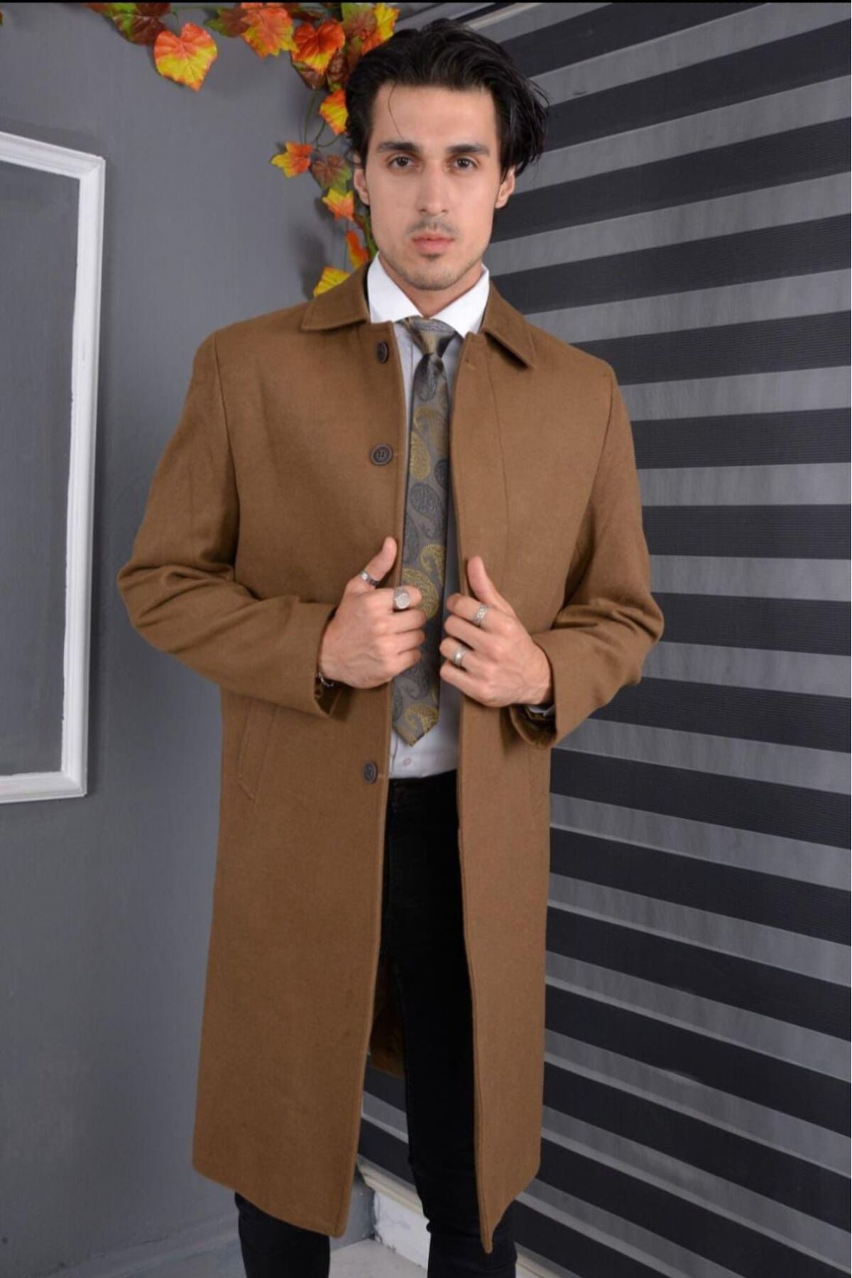 Erkek Diz Altı Klasik Gömlek Yaka Kaşe Kaban Erkek Diz Altı Klasik Gömlek Yaka Kaşe Kaban 4432 60