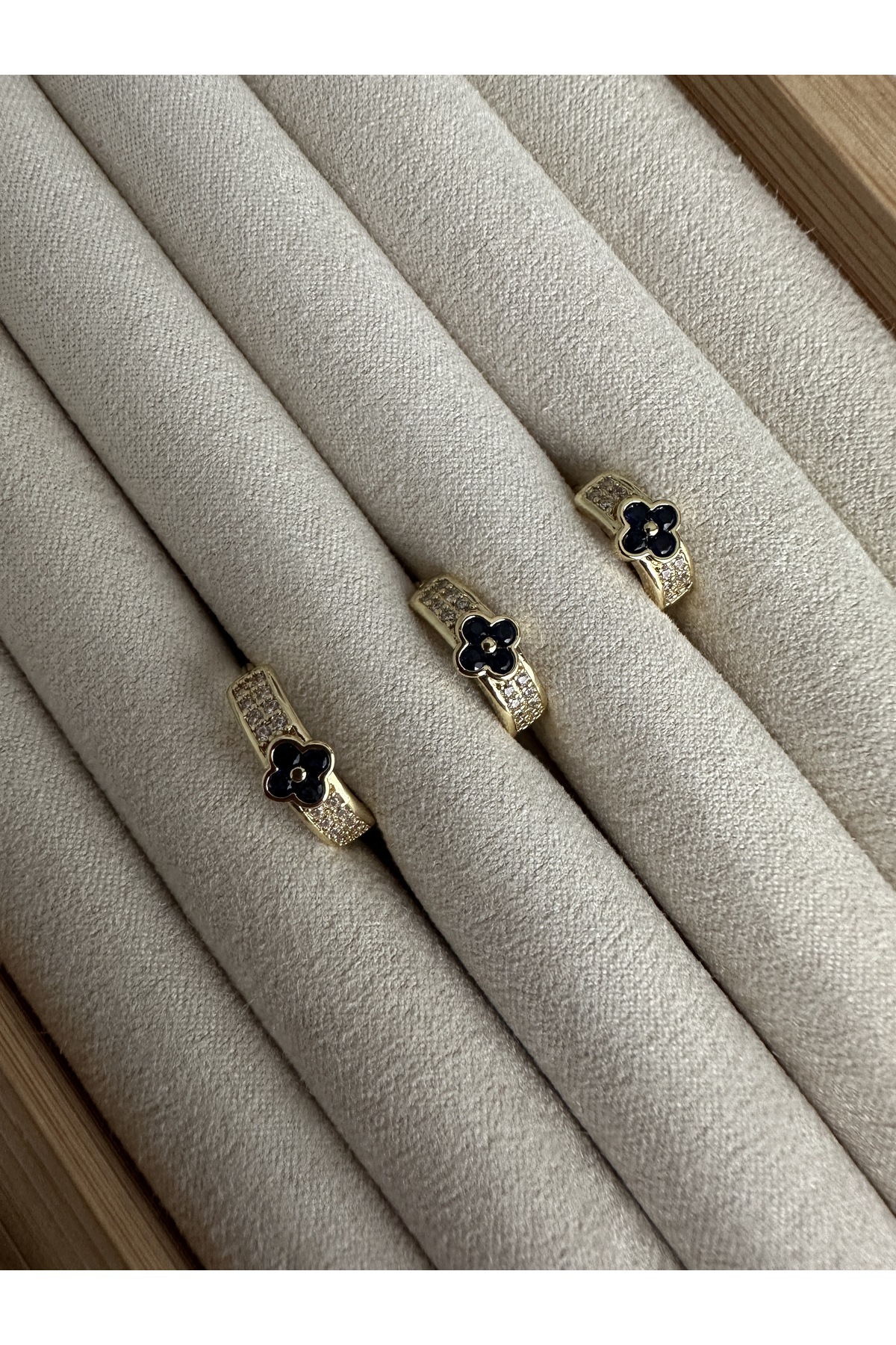 Lacivert Taşlı 3'lü Yonca Gold Küpe Seti Lacivert Taşlı 3'lü Yonca Gold Küpe Seti RBK347 تک سایز