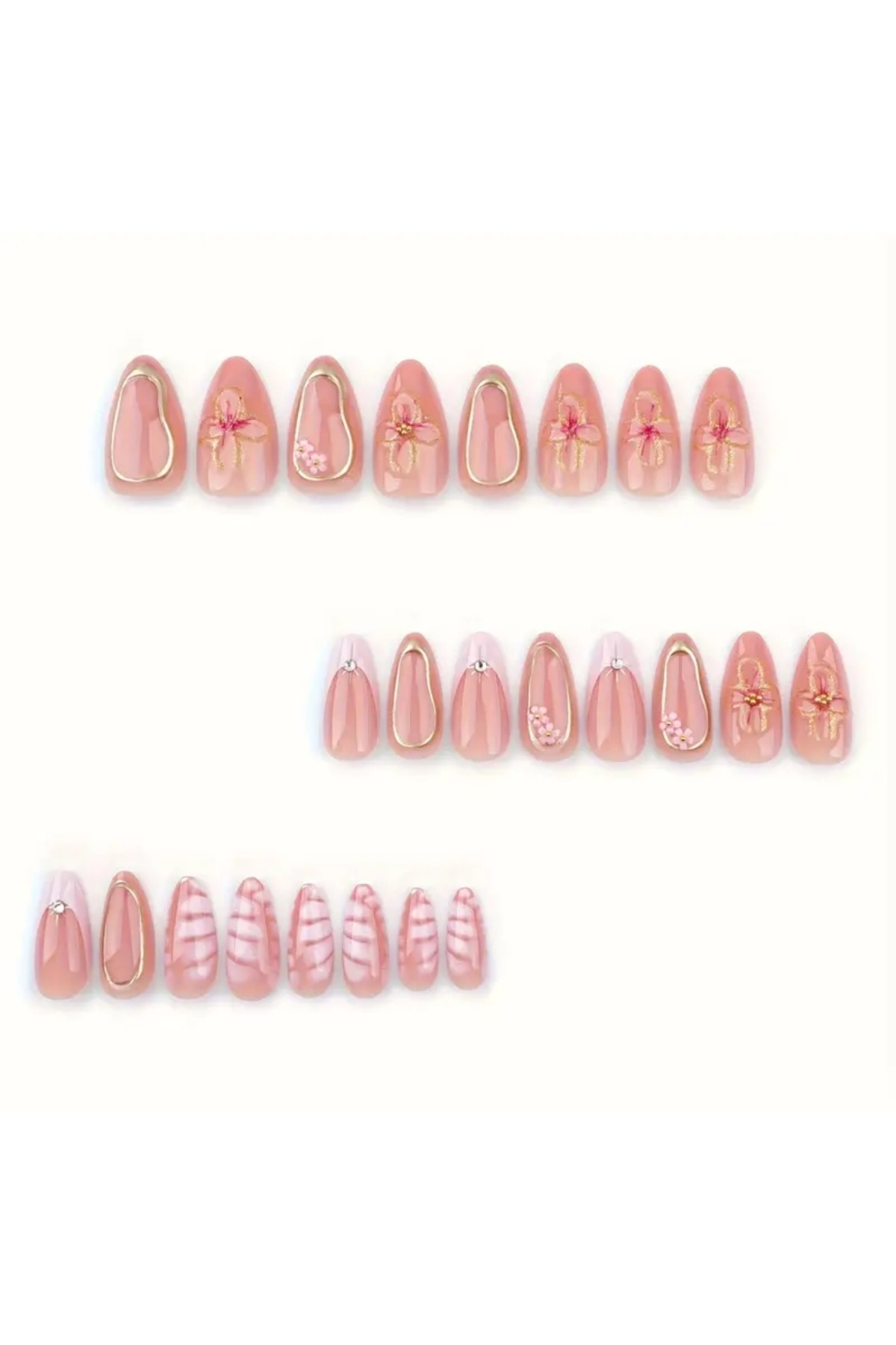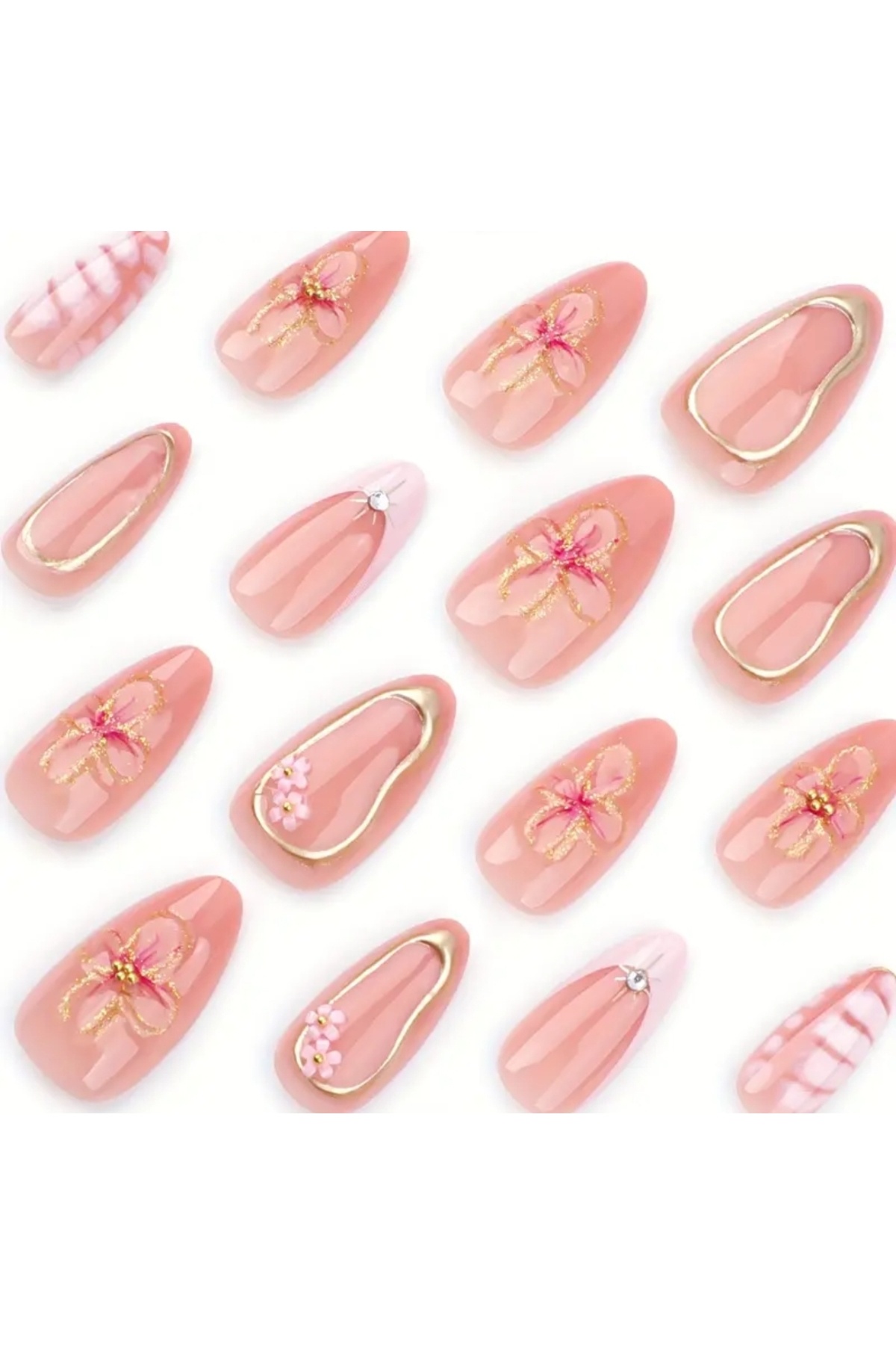 24'lü Gold Kabartma Detaylı Renkli Dijital Baskı Uzun Badem Jel Protez Görünümlü Takma Tırnak 24'lü Gold Kabartma Detaylı Renkli Dijital Baskı Uzun Badem Jel Protez Görünümlü Takma Tırnak TKMTRN-148 تک سایز