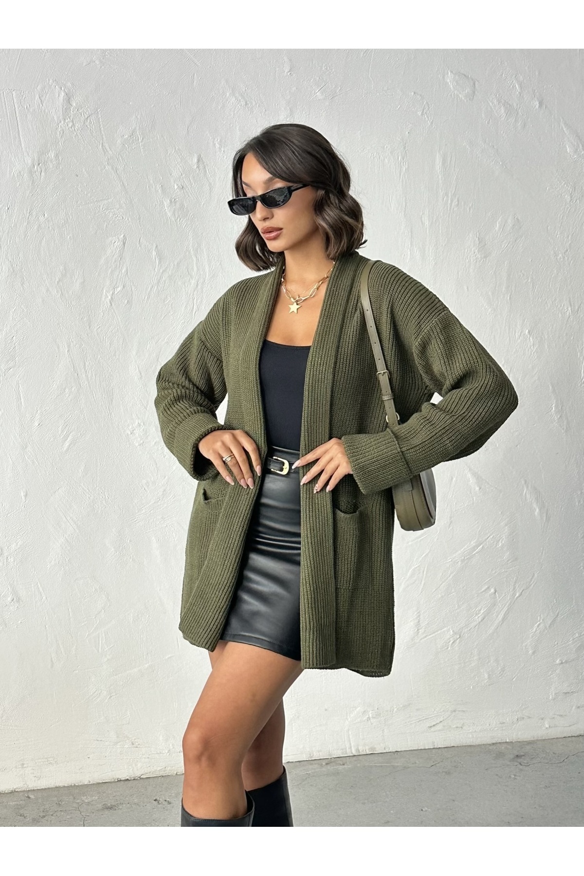 Kadın Şal Yaka Cepli Triko Hırka Kadın Şal Yaka Cepli Triko Hırka NMKHX01 Standart