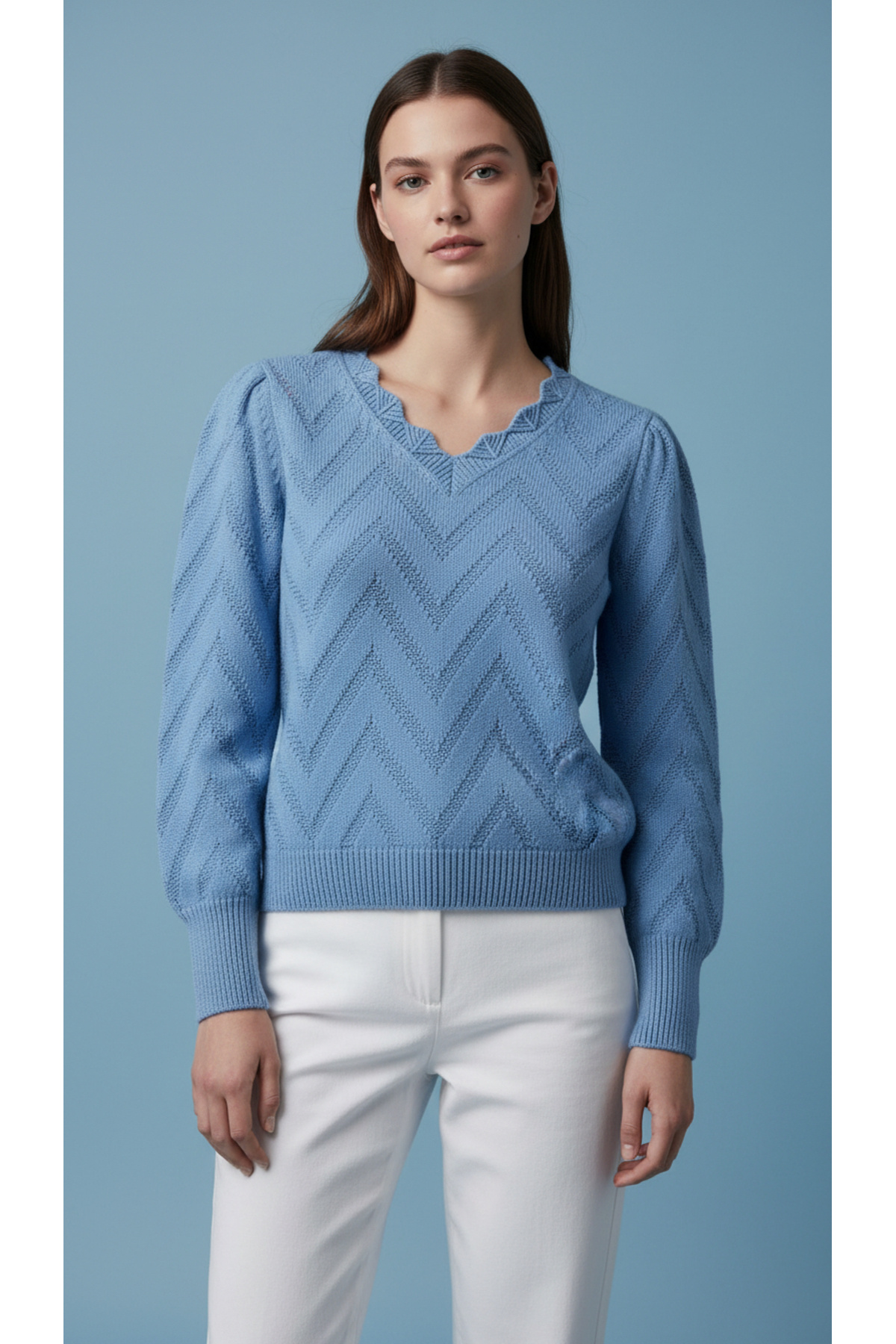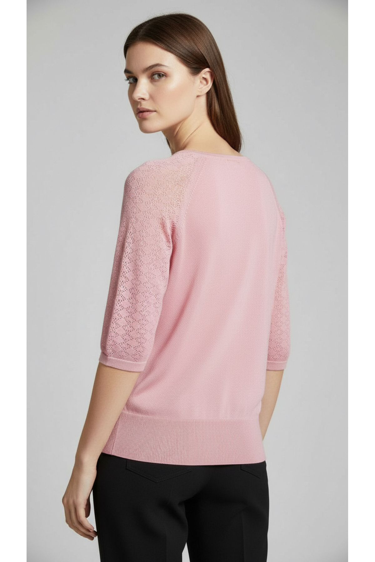 Pembe Kolları Ajur Desenli Triko Kazak Pembe Kolları Ajur Desenli Triko Kazak 108 M