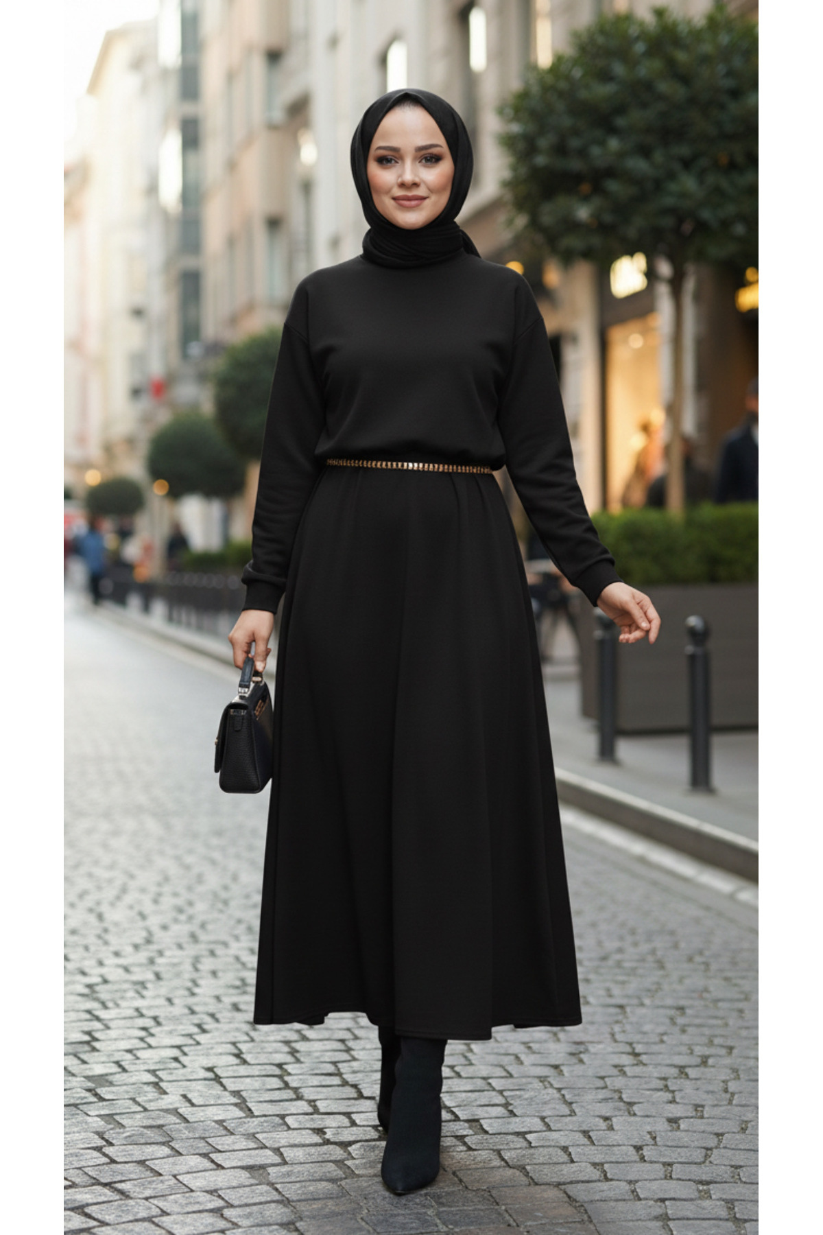 Kadın Sweat Ve Kiloş Etekli İkili Takım Kadın Sweat Ve Kiloş Etekli İkili Takım KEBK01 L