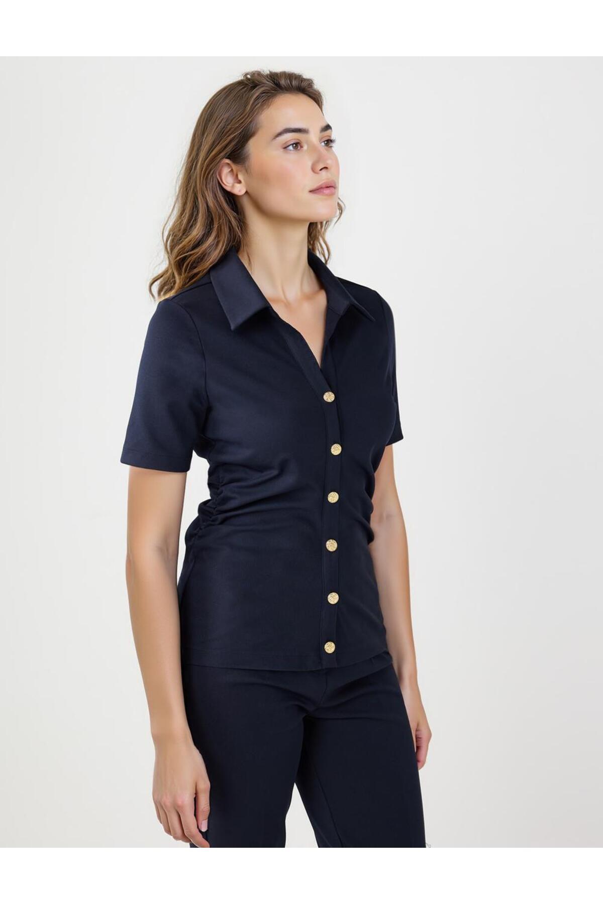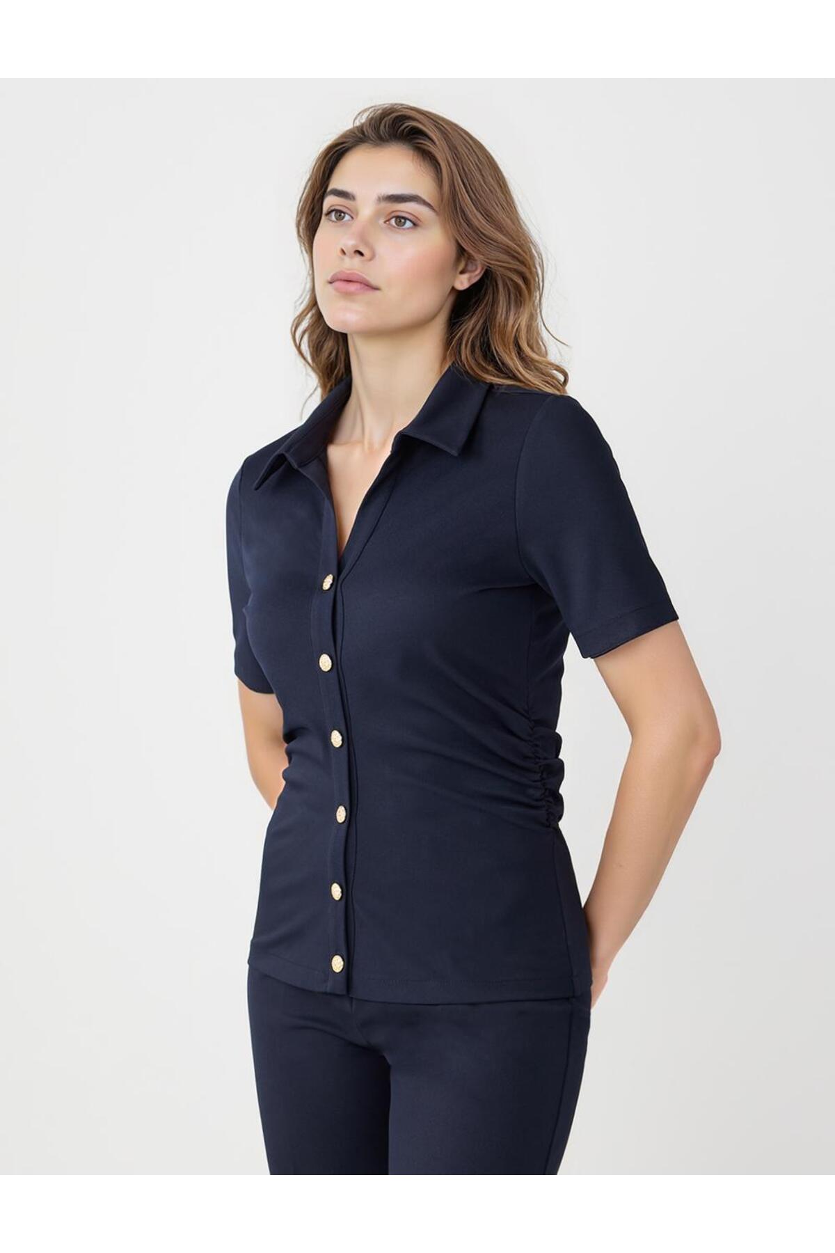 Lacivert Kısa Kollu Gömlek Yaka Dar Kesim Dokuma Bluz Lacivert Kısa Kollu Gömlek Yaka Dar Kesim Dokuma Bluz 5WW035669 XL