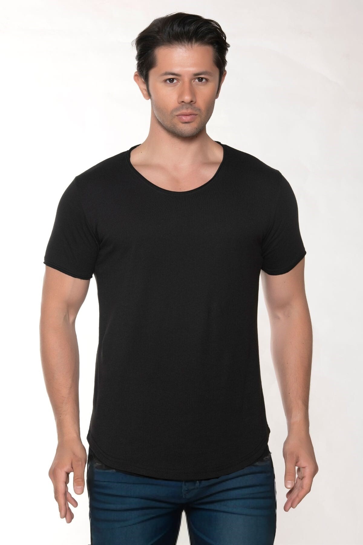 Erkek Geniş Yaka %100 Pamuk Salaş T-shirt Erkek Geniş Yaka %100 Pamuk Salaş T-shirt MDL2424 6XL