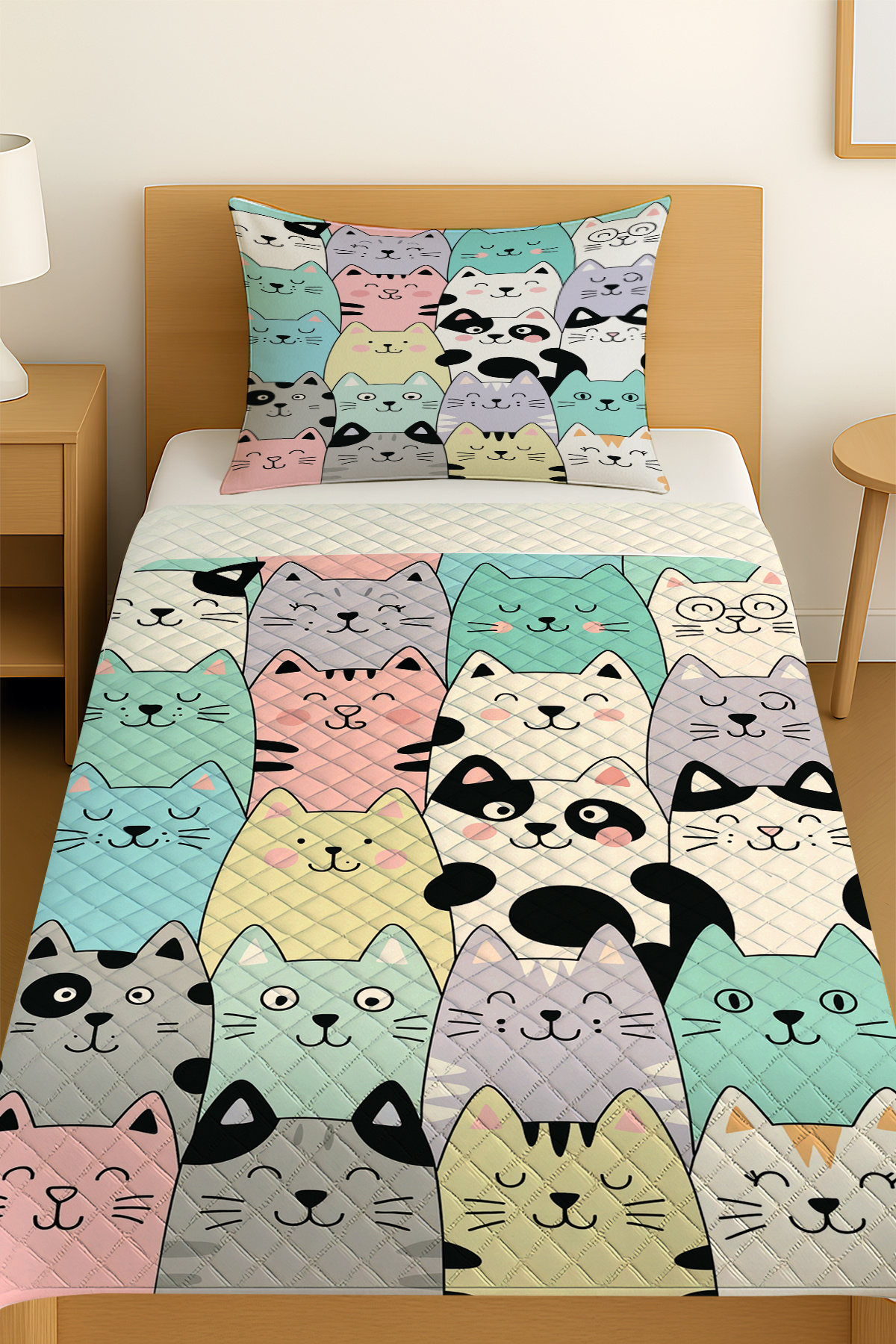 Yatak Örtüsü Sevimli Kedi Ve Kalpler 140x220 - Yastık Kılıfı Hediye Yatak Örtüsü Sevimli Kedi Ve Kalpler 140x220 - Yastık Kılıfı Hediye CYÖ-627 تک سایز
