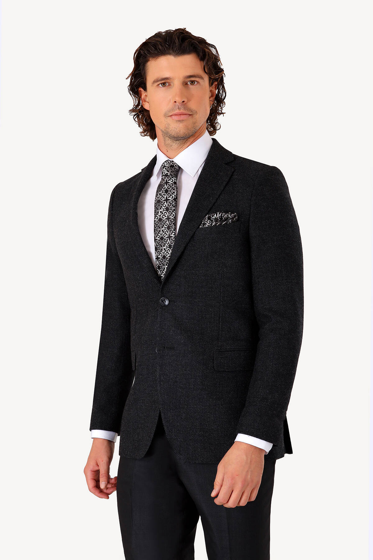 Erkek Siyah Regular Fit Mono Yaka Puntolu Yün-Kaşmir Karışımlı Blazer Ceket Erkek Siyah Regular Fit Mono Yaka Puntolu Yün-Kaşmir Karışımlı Blazer Ceket M101025K0001 48-6