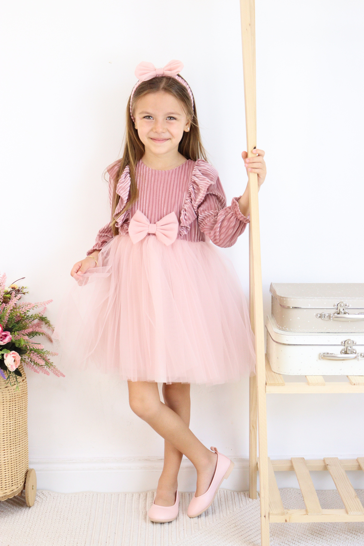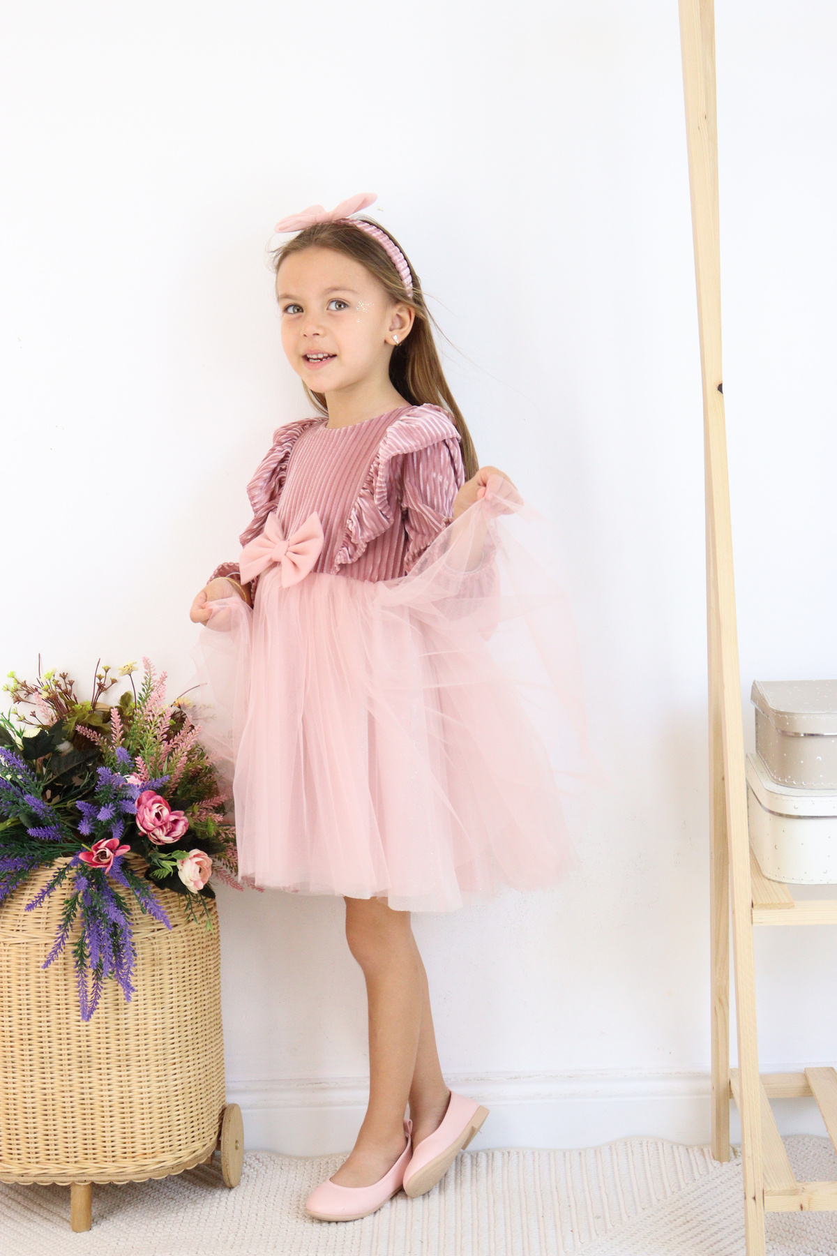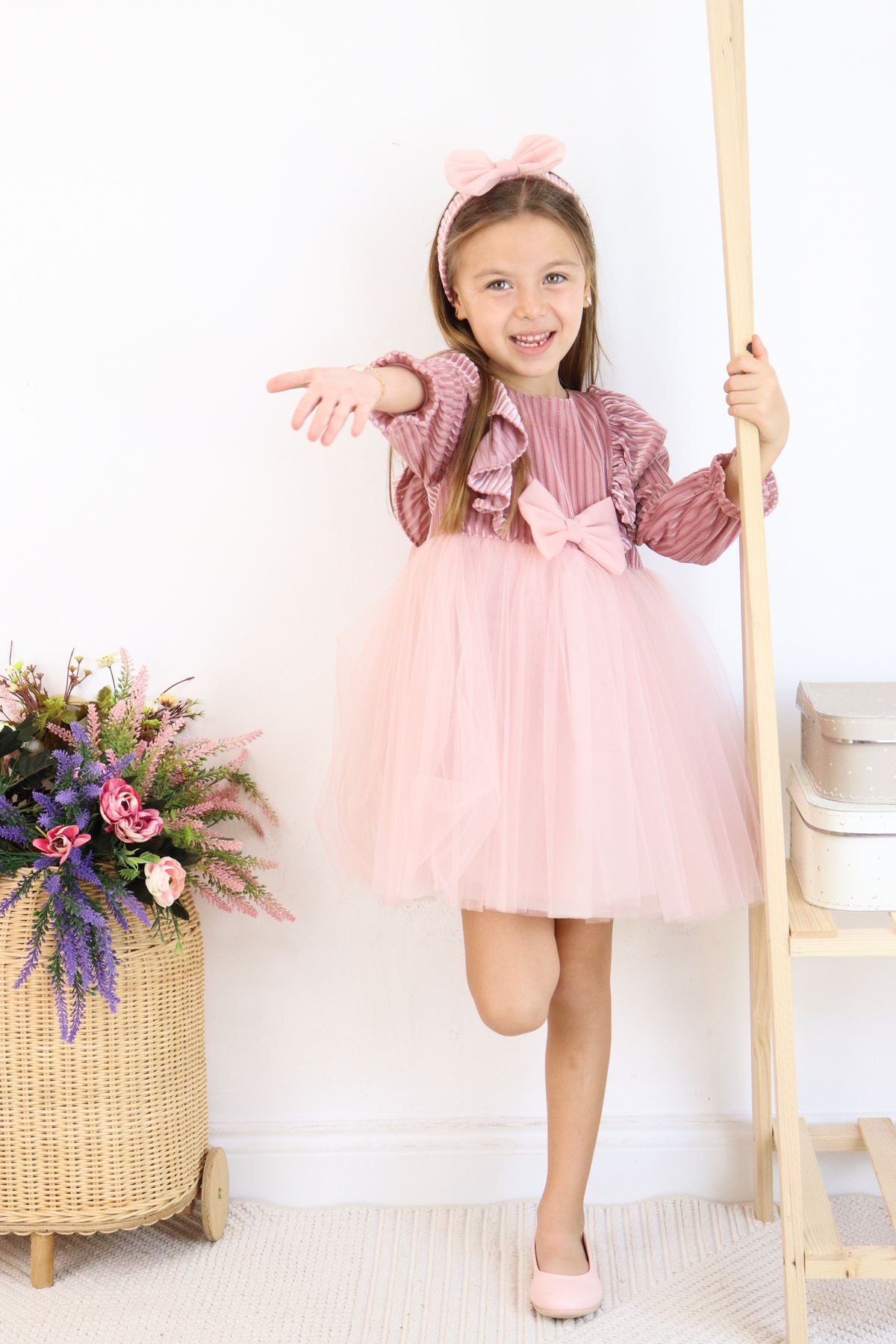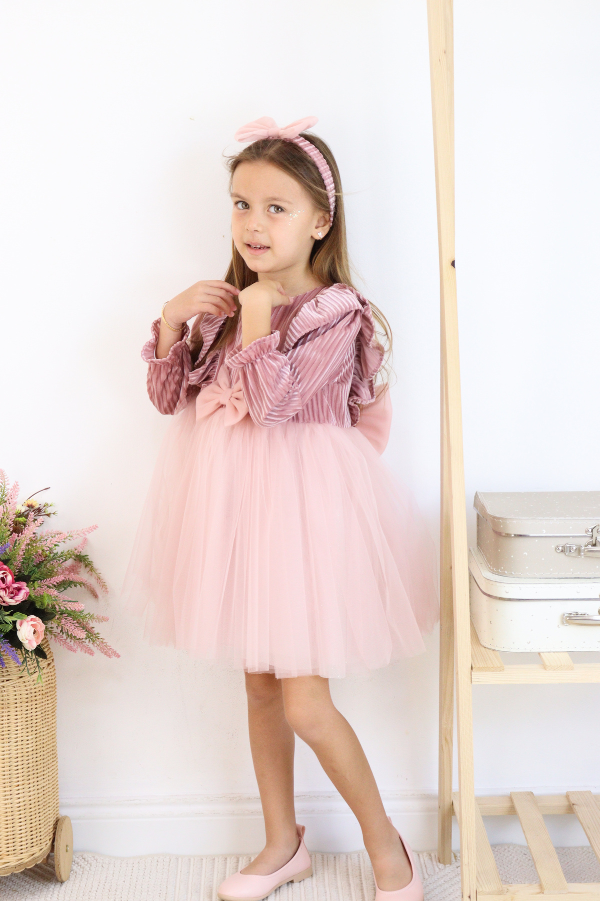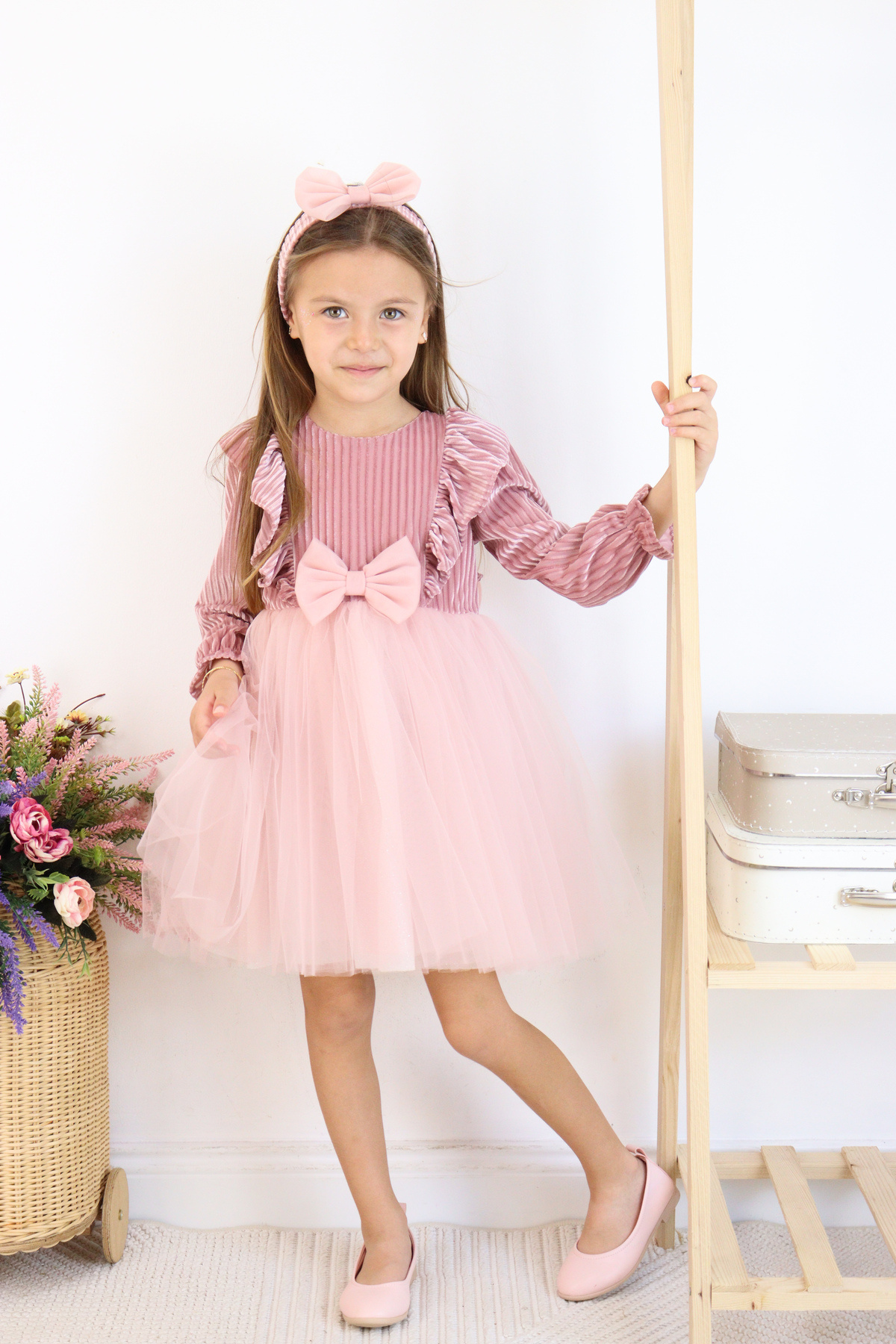 Bandanalı Kabarık Tütü Arka Büyük Fiyonklu Kadife Bebe Elbise Bandanalı Kabarık Tütü Arka Büyük Fiyonklu Kadife Bebe Elbise M0899 24-36 Ay