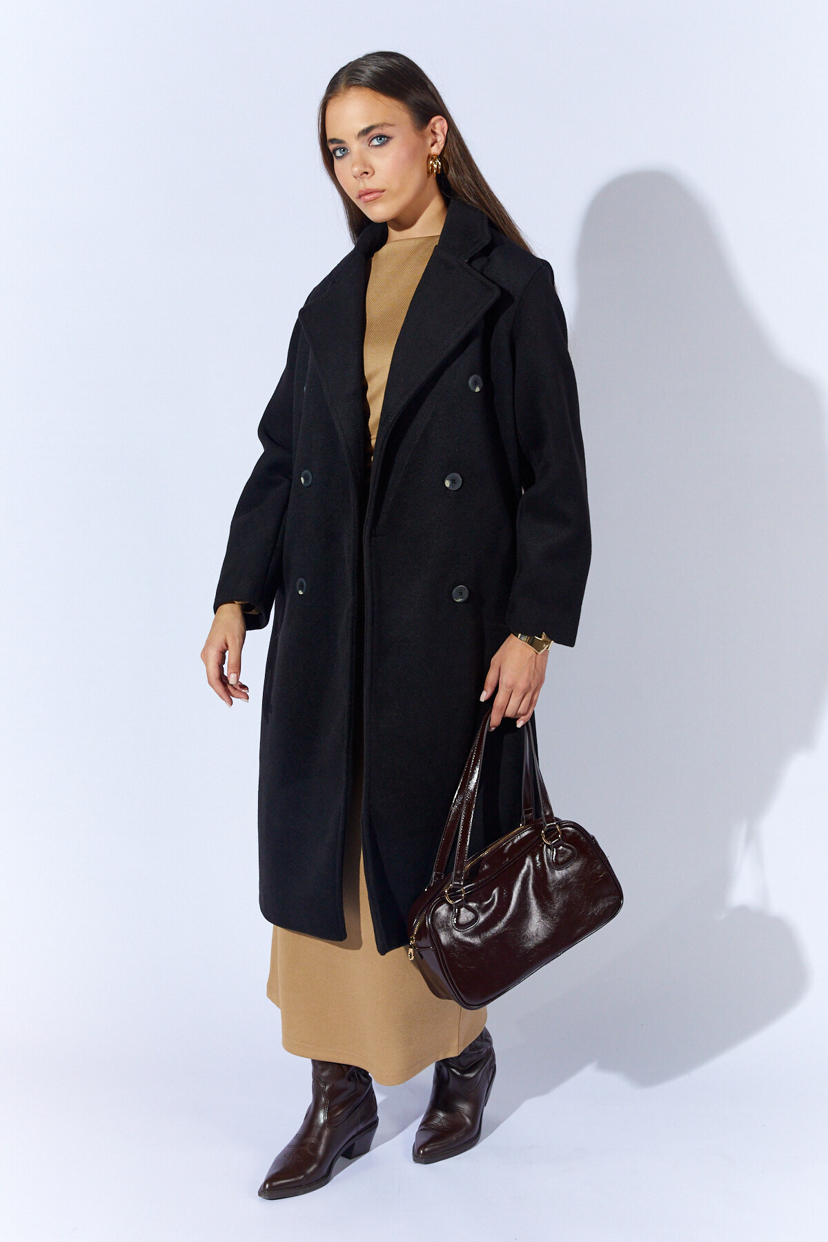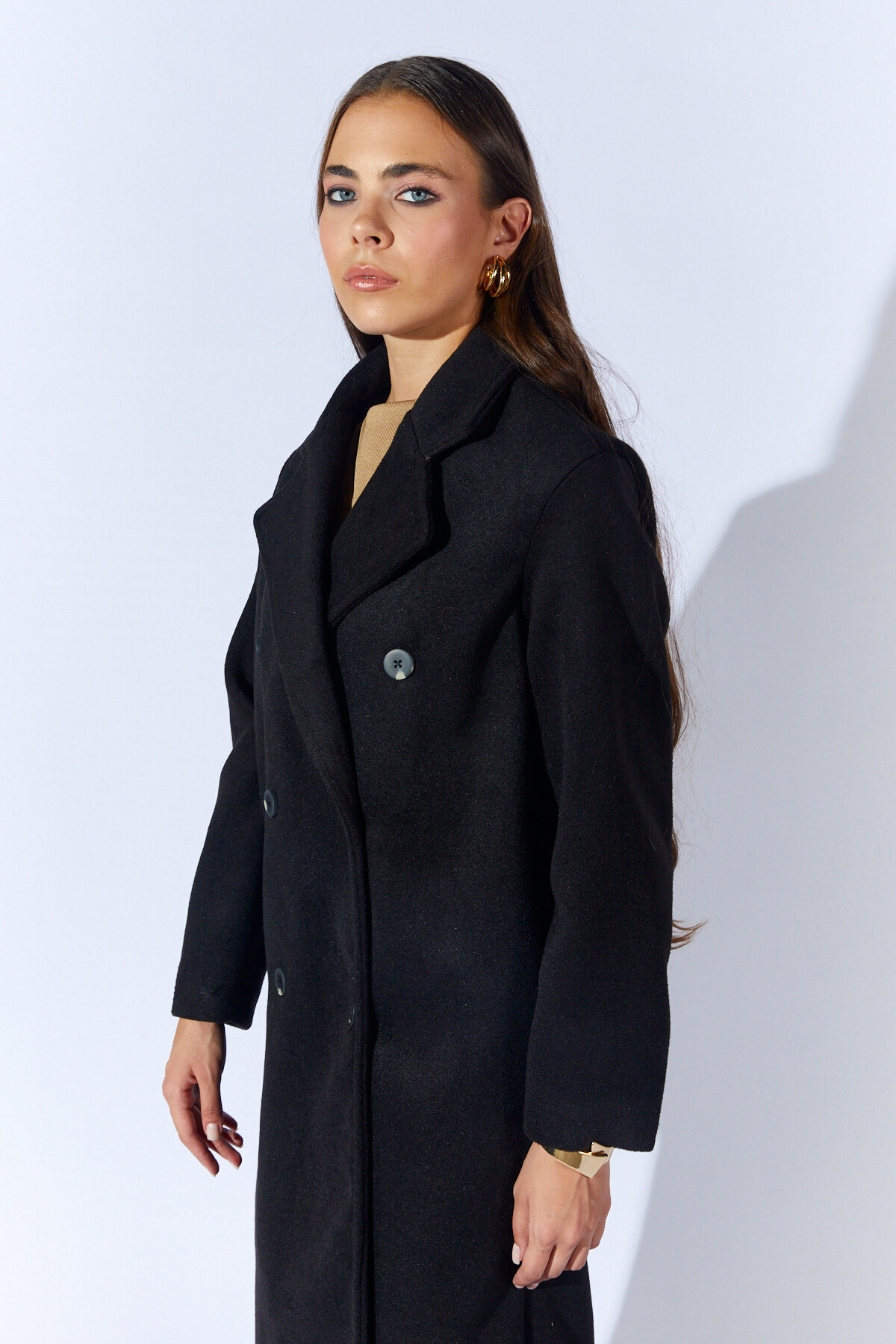 Altı Düğmeli Kruvaze Uzun Kaşe Kaban - Siyah | MKW355558-01 Altı Düğmeli Kruvaze Uzun Kaşe Kaban - Siyah | MKW355558-01 2XL