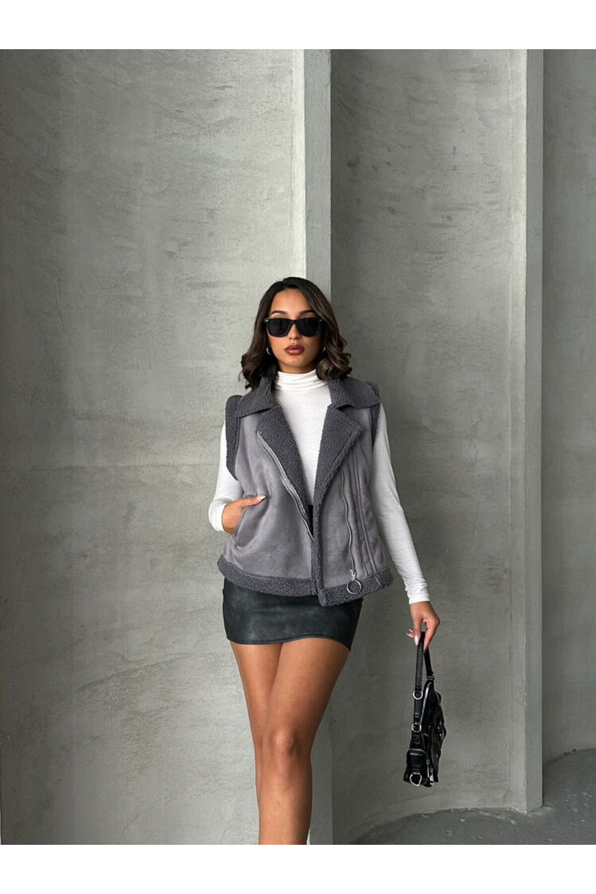 Gri Süet Yakası Kürklü Premium Luxury Trend Özel Tasarım Kadın Yelek Gri Süet Yakası Kürklü Premium Luxury Trend Özel Tasarım Kadın Yelek A05EFJUIOKMH0F1532 L