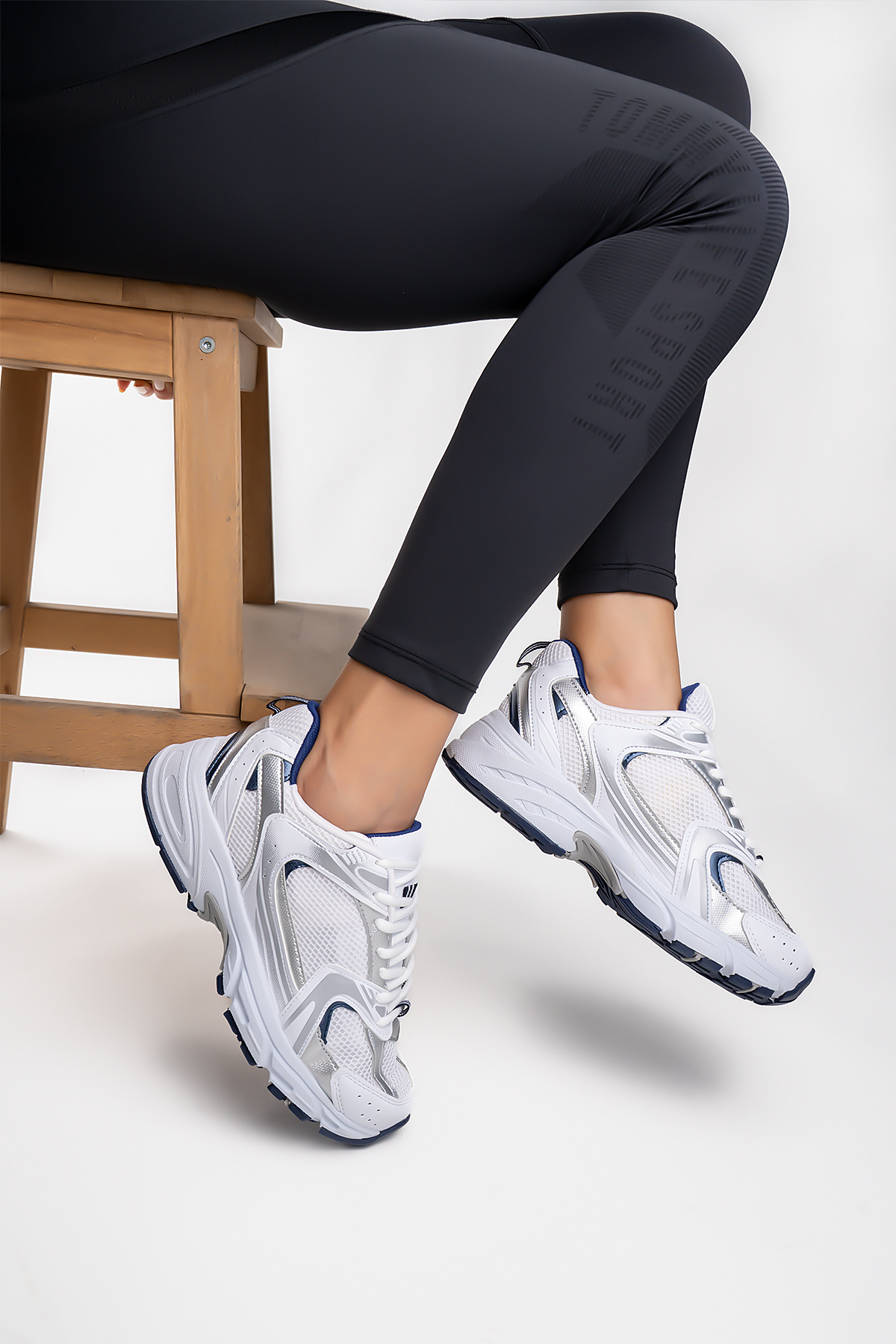 Kadın Erkek Beyaz Lacivert Kalın Taban Yürüyüş Spor Ayakkabı Sneaker Kadın Erkek Beyaz Lacivert Kalın Taban Yürüyüş Spor Ayakkabı Sneaker N530 36
